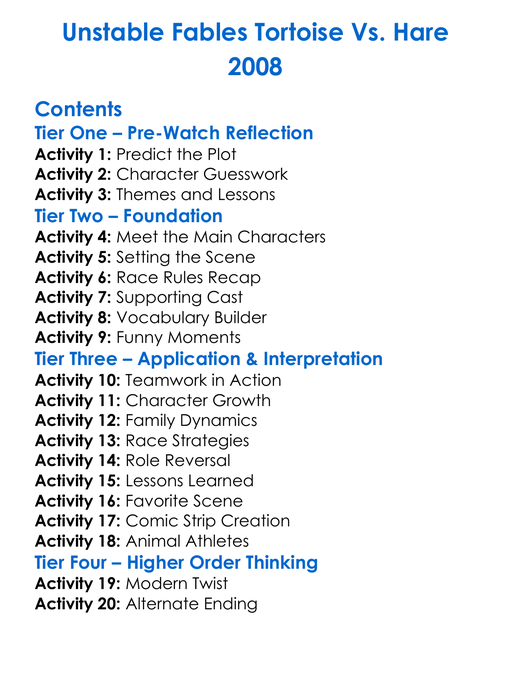 Unstable Fables Tortoise Vs Hare 2008 Worksheet Activity Booklet