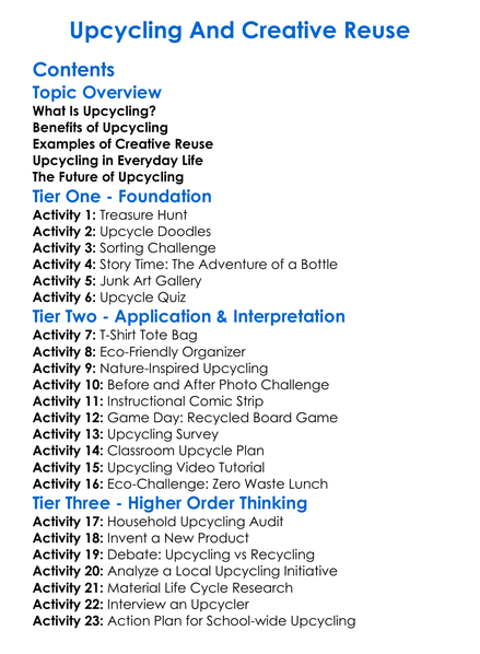 Upcycling And Creative Reuse Worksheet Activity Booklet