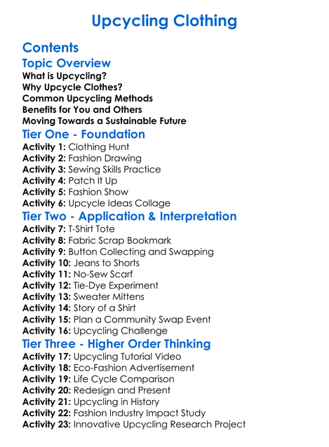 Upcycling Clothing Worksheet Activity Booklet