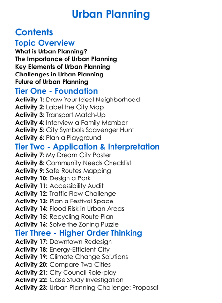 Urban Planning Worksheet Activity Booklet