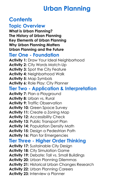 Urban Planning Worksheet Activity Booklet
