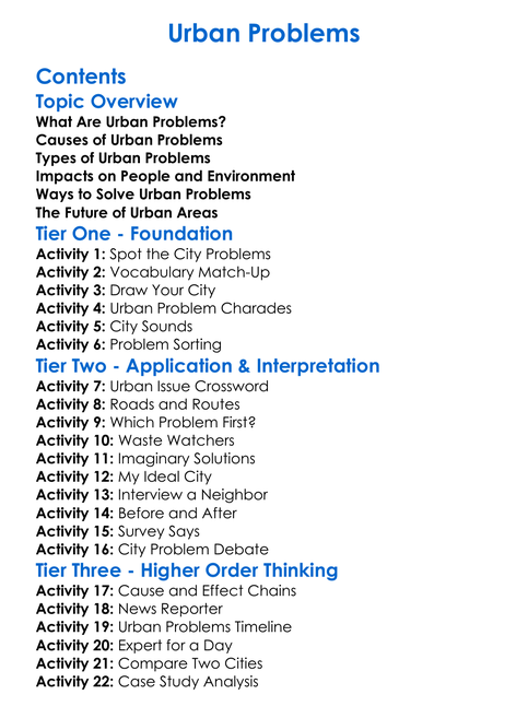 Urban Problems Worksheet Activity Booklet