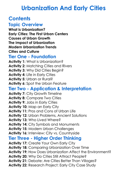 Urbanization And Early Cities Worksheet Activity Booklet
