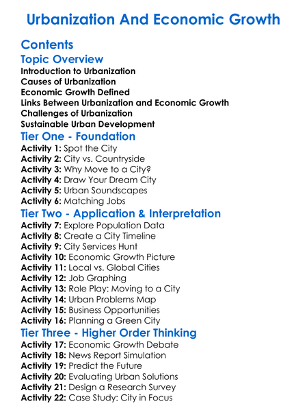 Urbanization And Economic Growth Worksheet Activity Booklet