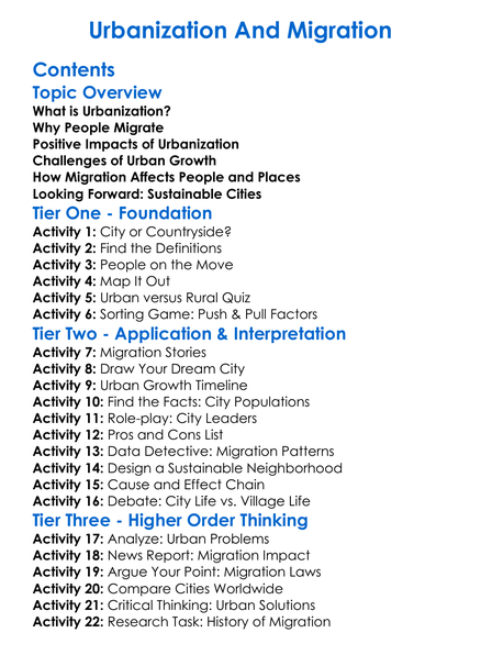 Urbanization And Migration Worksheet Activity Booklet