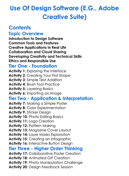 Use Of Design Software Eg Adobe Creative Suite Worksheet Activity Booklet