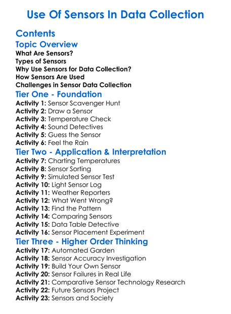 Use Of Sensors In Data Collection Worksheet Activity Booklet