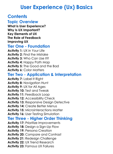 User Experience Ux Basics Worksheet Activity Booklet