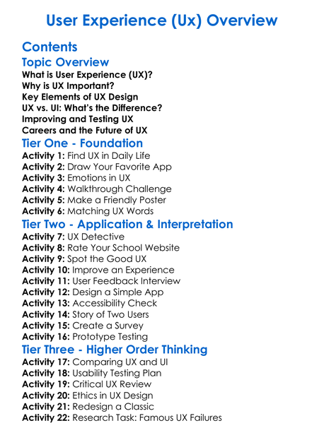 User Experience Ux Overview Worksheet Activity Booklet