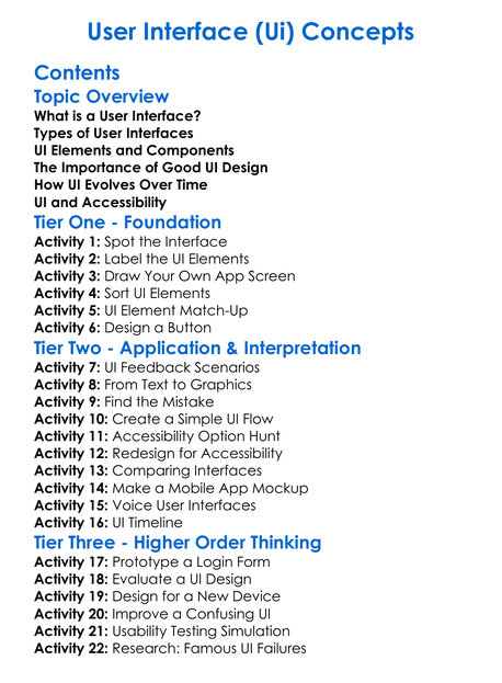 User Interface Ui Concepts Worksheet Activity Booklet
