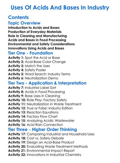 Uses Of Acids And Bases In Industry Worksheet Activity Booklet