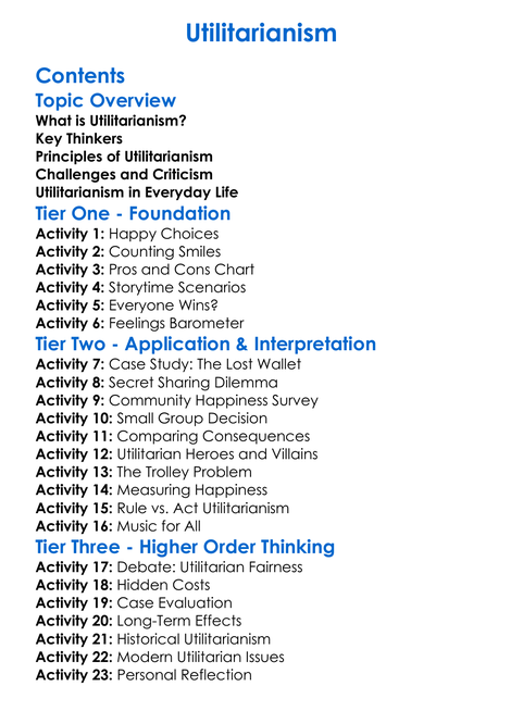 Utilitarianism Worksheet Activity Booklet