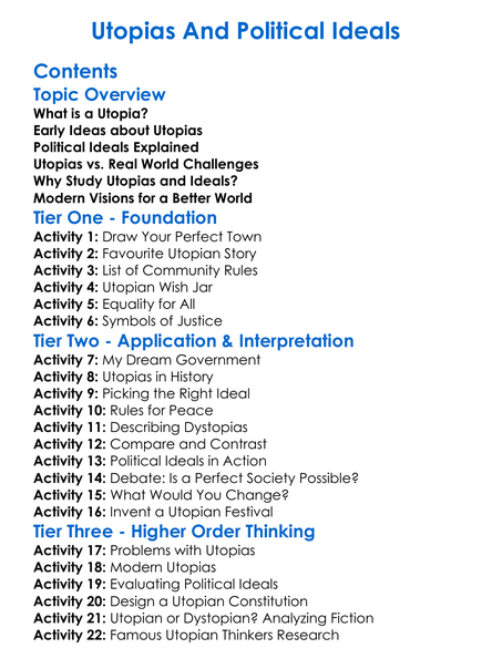 Utopias And Political Ideals Worksheet Activity Booklet