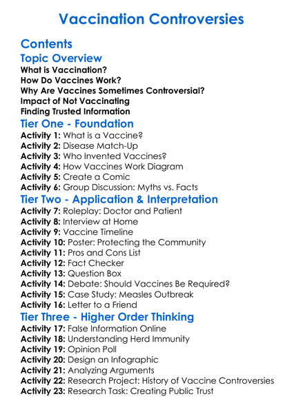 Vaccination Controversies Worksheet Activity Booklet
