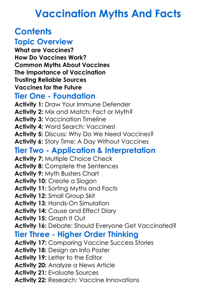 Vaccination Myths And Facts Worksheet Activity Booklet