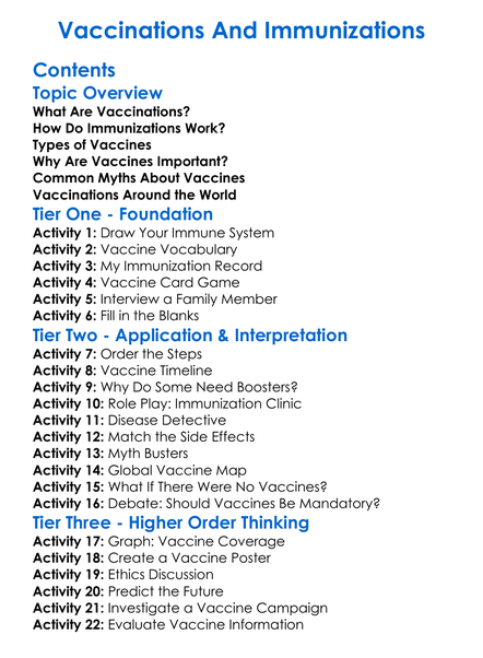 Vaccinations And Immunizations Worksheet Activity Booklet