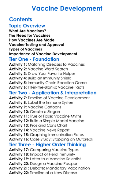 Vaccine Development Worksheet Activity Booklet