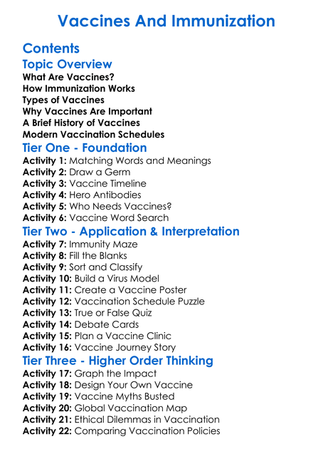 Vaccines And Immunization Worksheet Activity Booklet