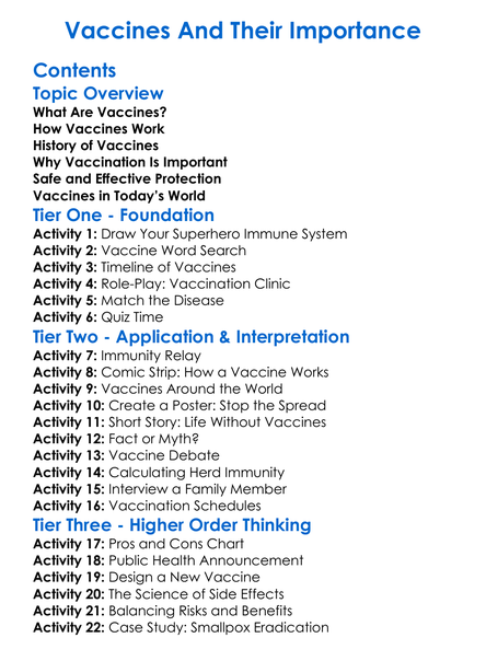 Vaccines And Their Importance Worksheet Activity Booklet
