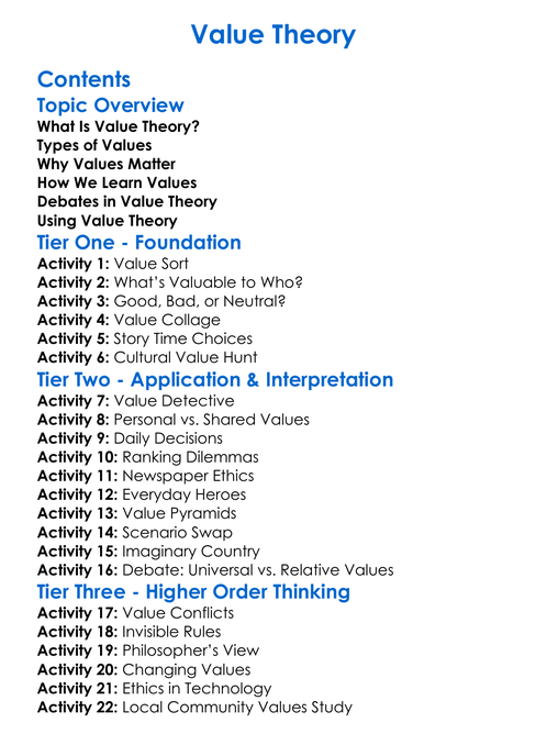 Value Theory Worksheet Activity Booklet