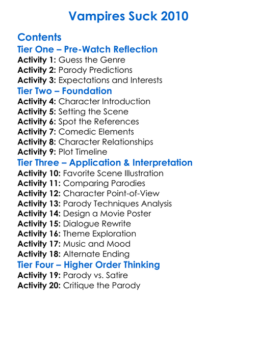 Vampires Suck 2010 Worksheet Activity Booklet