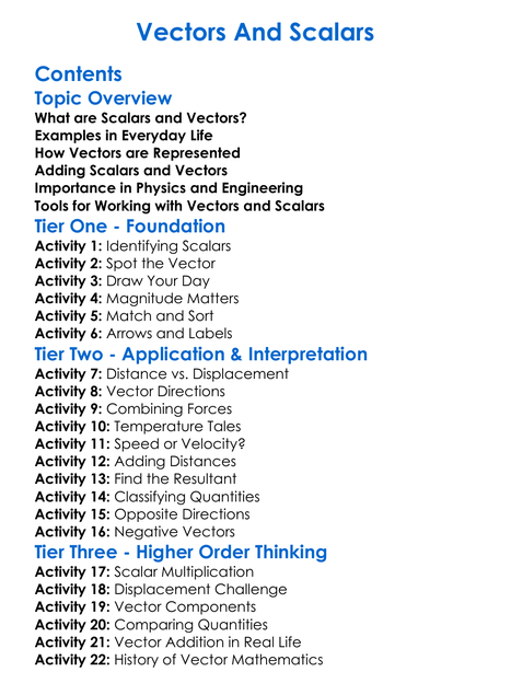 Vectors And Scalars Worksheet Activity Booklet