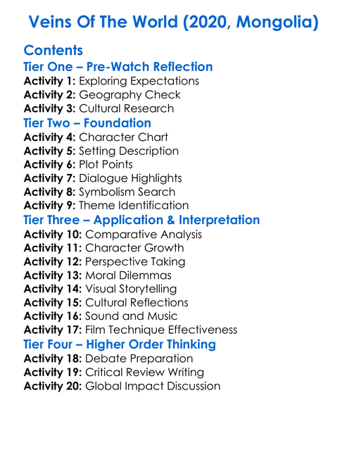 Veins Of The World 2020 Mongolia Worksheet Activity Booklet