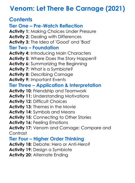Venom Let There Be Carnage 2021 Worksheet Activity Booklet