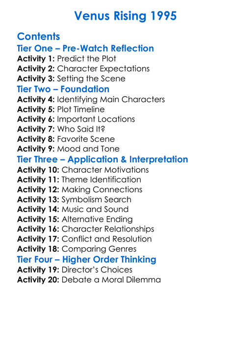 Venus Rising 1995 Worksheet Activity Booklet