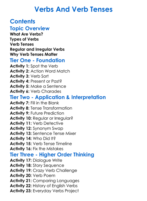 Verbs And Verb Tenses Worksheet Activity Booklet