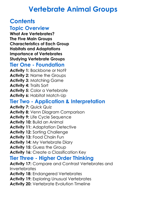 Vertebrate Animal Groups Worksheet Activity Booklet