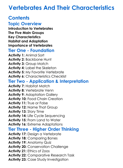Vertebrates And Their Characteristics Worksheet Activity Booklet