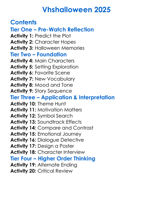 Vhshalloween 2025 Worksheet Activity Booklet