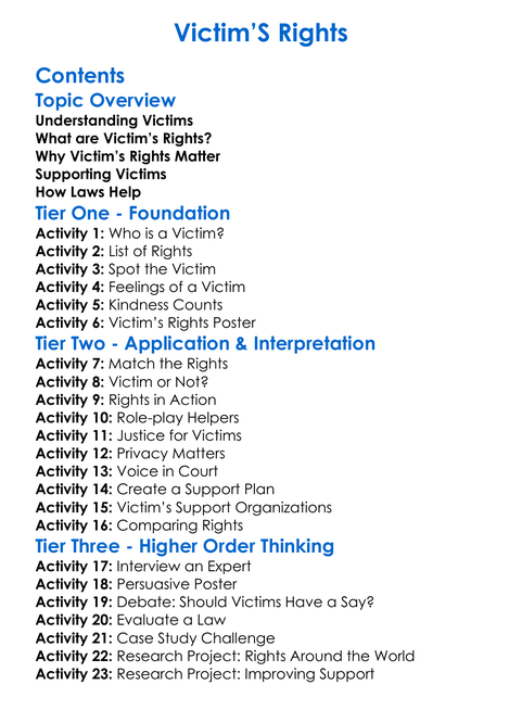 Victims Rights Worksheet Activity Booklet