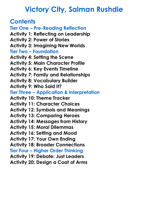 Victory City Salman Rushdie Worksheet Activity Booklet