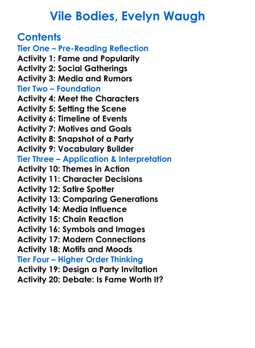 Vile Bodies Evelyn Waugh Worksheet Activity Booklet