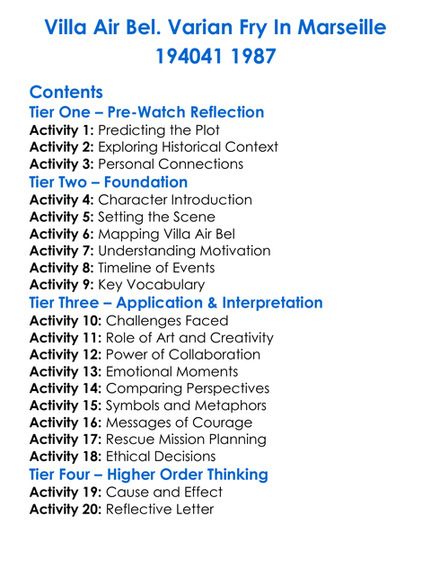 Villa Air Bel Varian Fry In Marseille 194041 1987 Worksheet Activity Booklet
