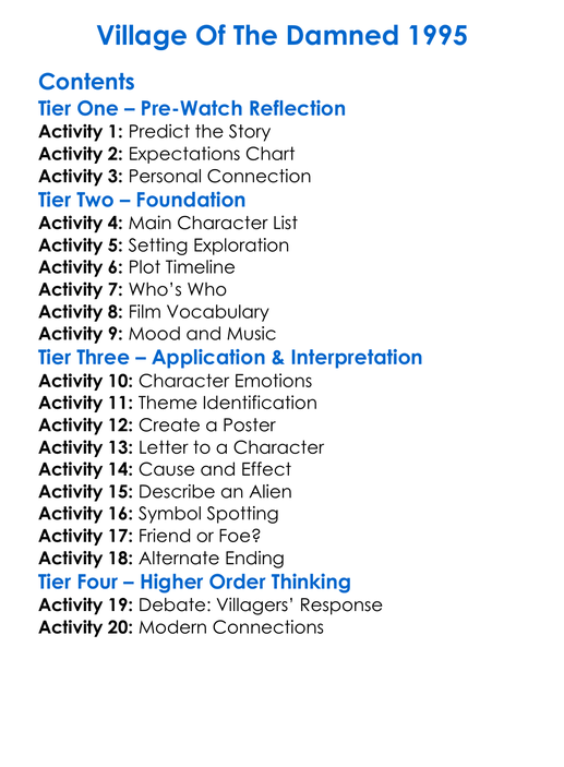 Village Of The Damned 1995 Worksheet Activity Booklet