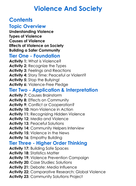 Violence And Society Worksheet Activity Booklet