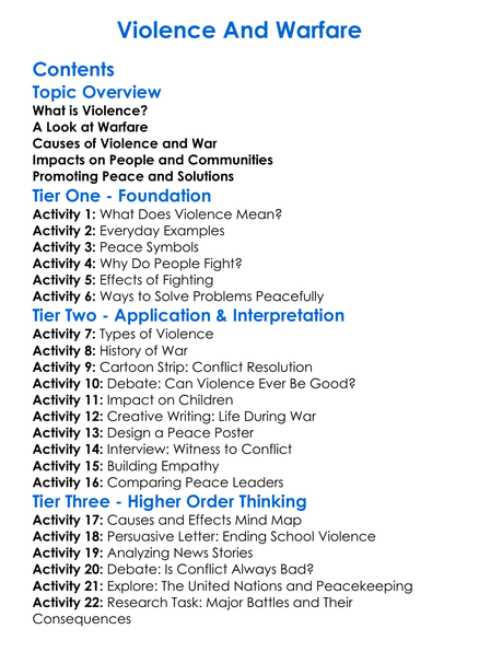 Violence And Warfare Worksheet Activity Booklet