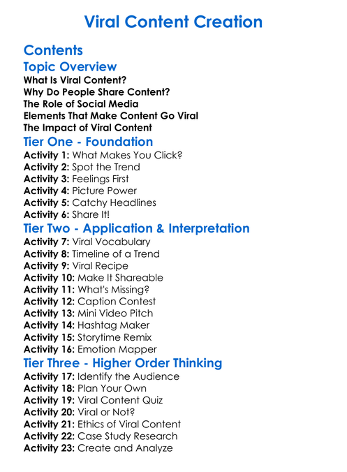 Viral Content Creation Worksheet Activity Booklet