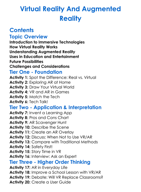 Virtual Reality And Augmented Reality Worksheet Activity Booklet