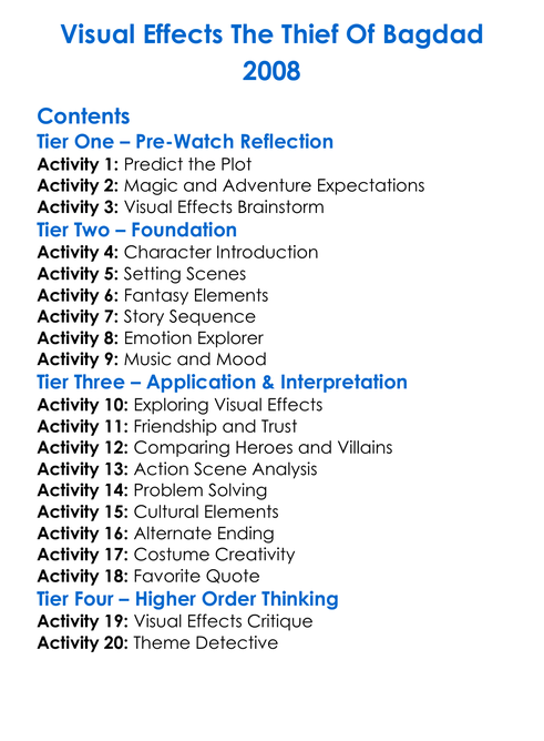 Visual Effects The Thief Of Bagdad 2008 Worksheet Activity Booklet