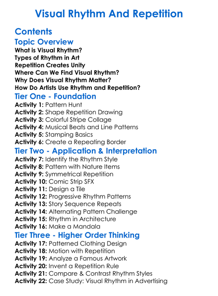 Visual Rhythm And Repetition Worksheet Activity Booklet