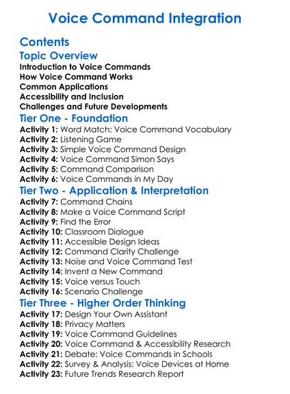 Voice Command Integration Worksheet Activity Booklet