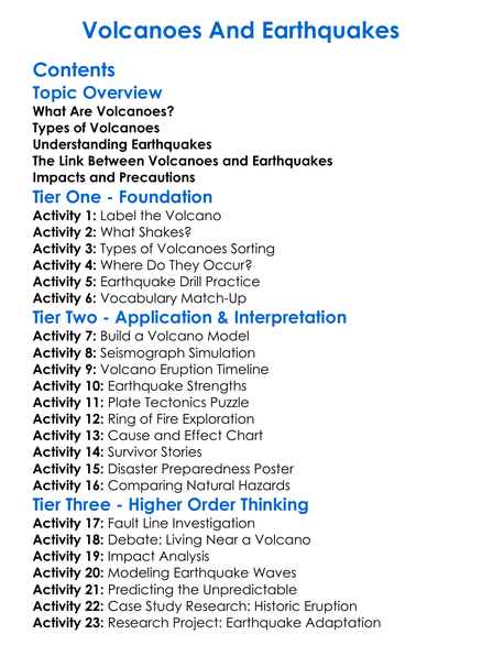 Volcanoes And Earthquakes Worksheet Activity Booklet