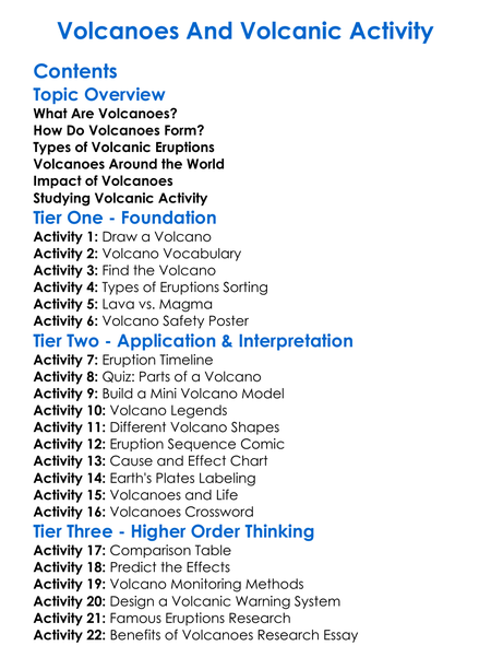 Volcanoes And Volcanic Activity Worksheet Activity Booklet