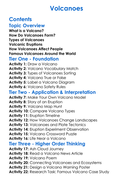 Volcanoes Worksheet Activity Booklet