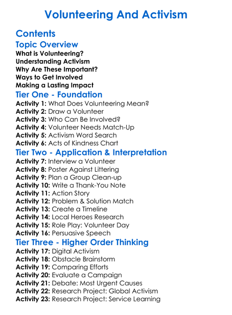 Volunteering And Activism Worksheet Activity Booklet