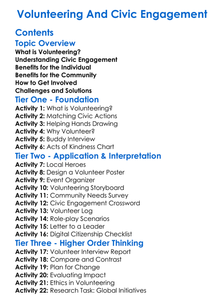 Volunteering And Civic Engagement Worksheet Activity Booklet
